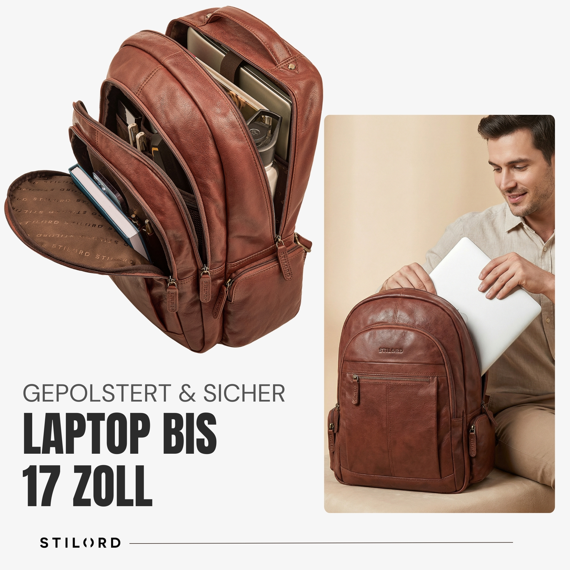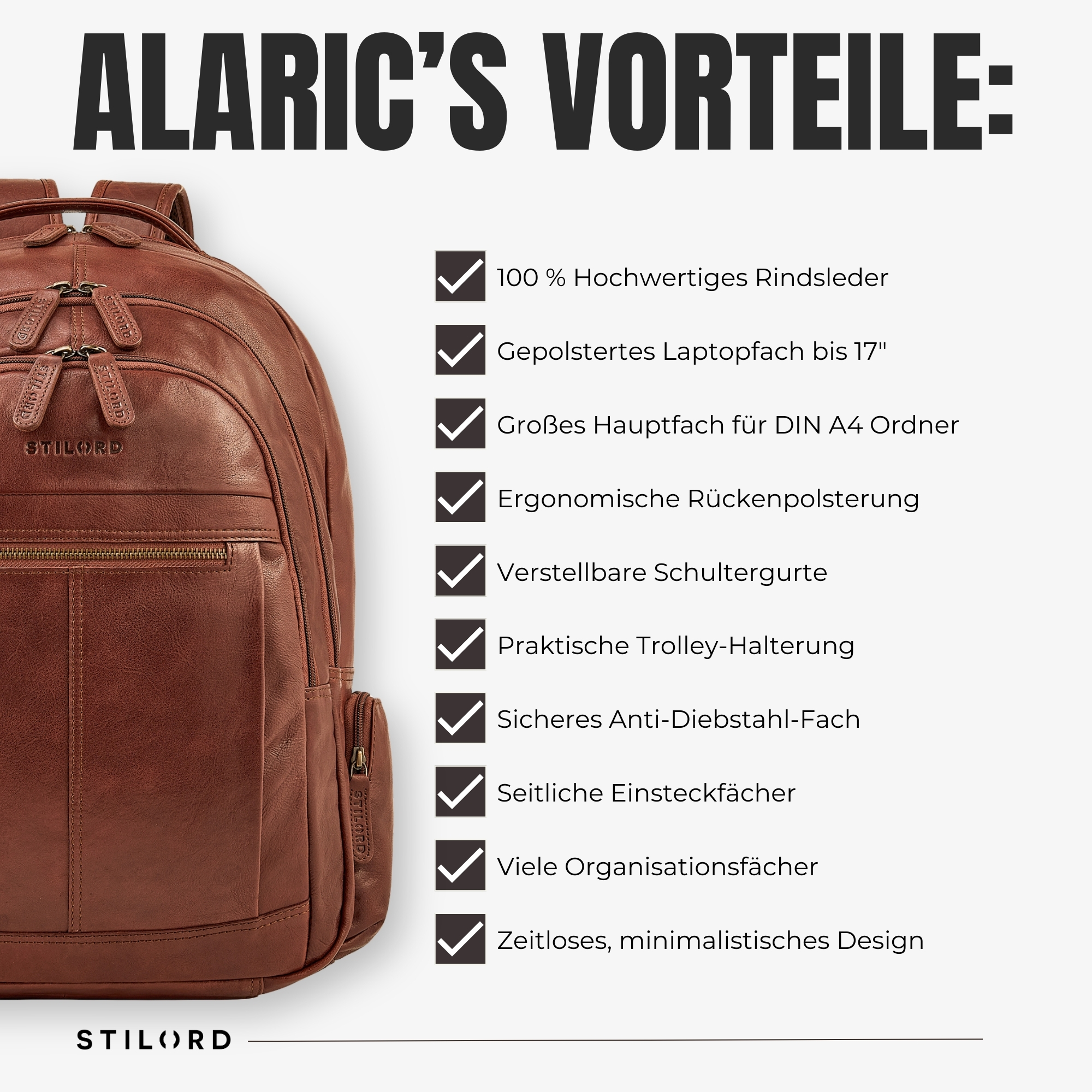 STILORD "Alaric" Echtleder XL Rucksack – Ihr stilvoller Business- und Arbeitsrucksack für Herren
