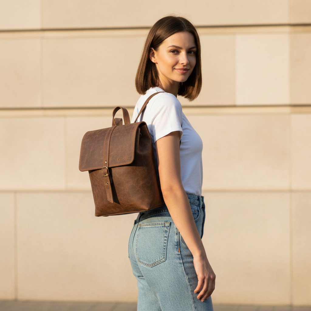 So modern kann Vintage sein! 100% echtes Leder, cleaner Look, elegante Akzente - mit dem Damen Lederrucksack "Mathilda" erleben Sie echtes Vintage Feeling, das Natürlichkeit und Qualität gekonnt miteinander vereint.