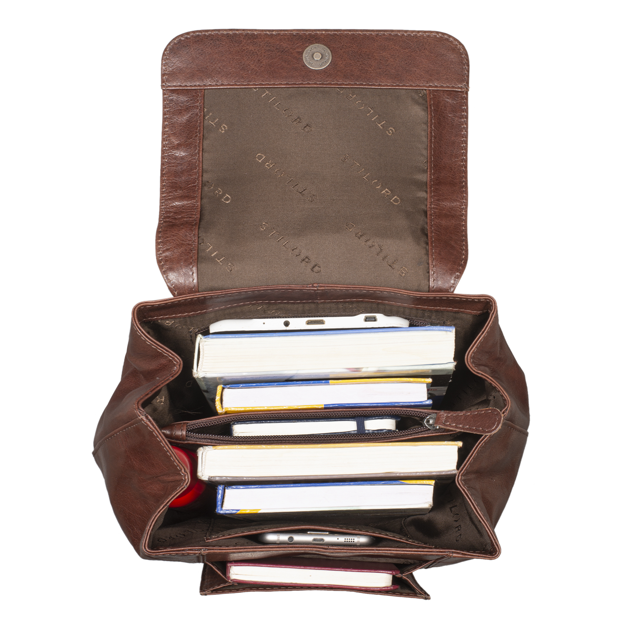 - ALLES AUF EINEN BLICK: Abmessungen (LxBxH) : ca. 26 x 9 x 28 | Modell: Fiona | Material: echtes Rindsleder | Gewicht: 830 Gramm | Hersteller: STILORD | Hauptfach (ungepolstert) für DIN A5 Dokumente, Tablet & iPad 9.7 - 10.1 Zoll (18 x 21 cm) | kompaktes Raumwunder mit insgesamt 6 Fächern