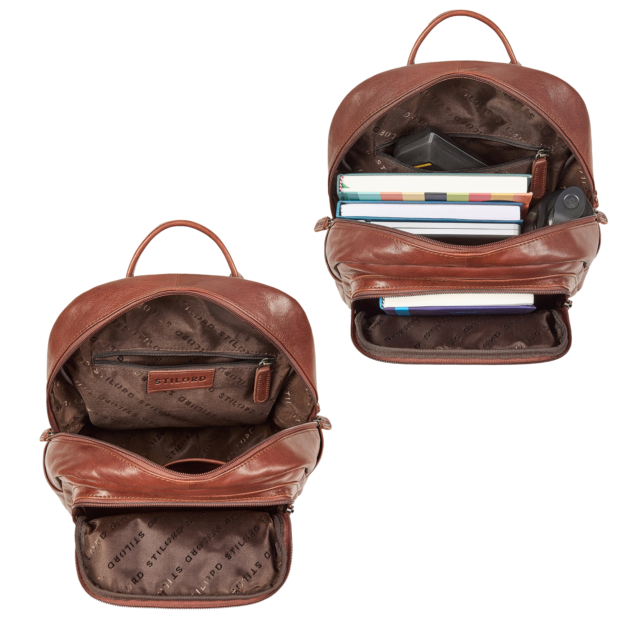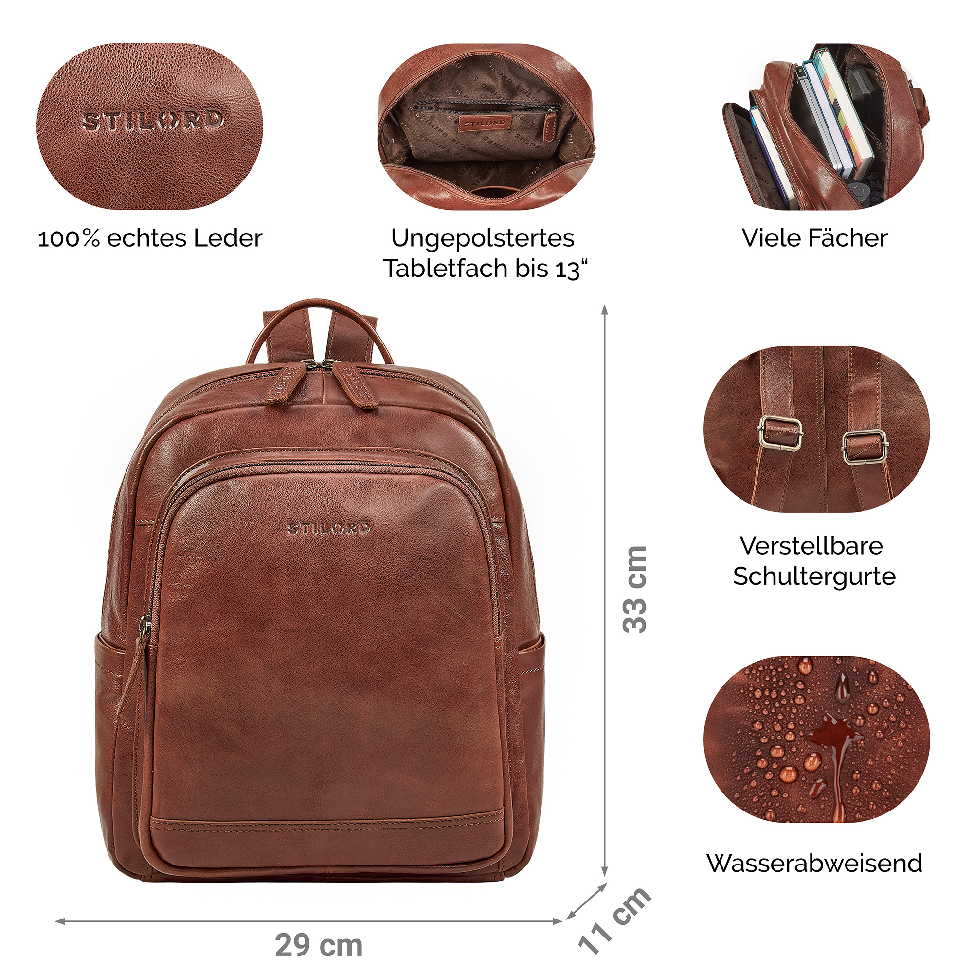 Der STILORD Leder Rucksack für Damen verbindet feminine Eleganz mit praktischer Funktionalität. "Clarissa" ist ein mittelgroßer Damenrucksack, der durch seine kompakte Form und vielen Fächer für perfekte Organisation sorgt. Tablet bis 13 Zoll und schmale DIN A4 Dokumente finden ebenso Platz wie Ihre persönlichen Essentials – ideal für Beruf, Uni oder Freizeit.