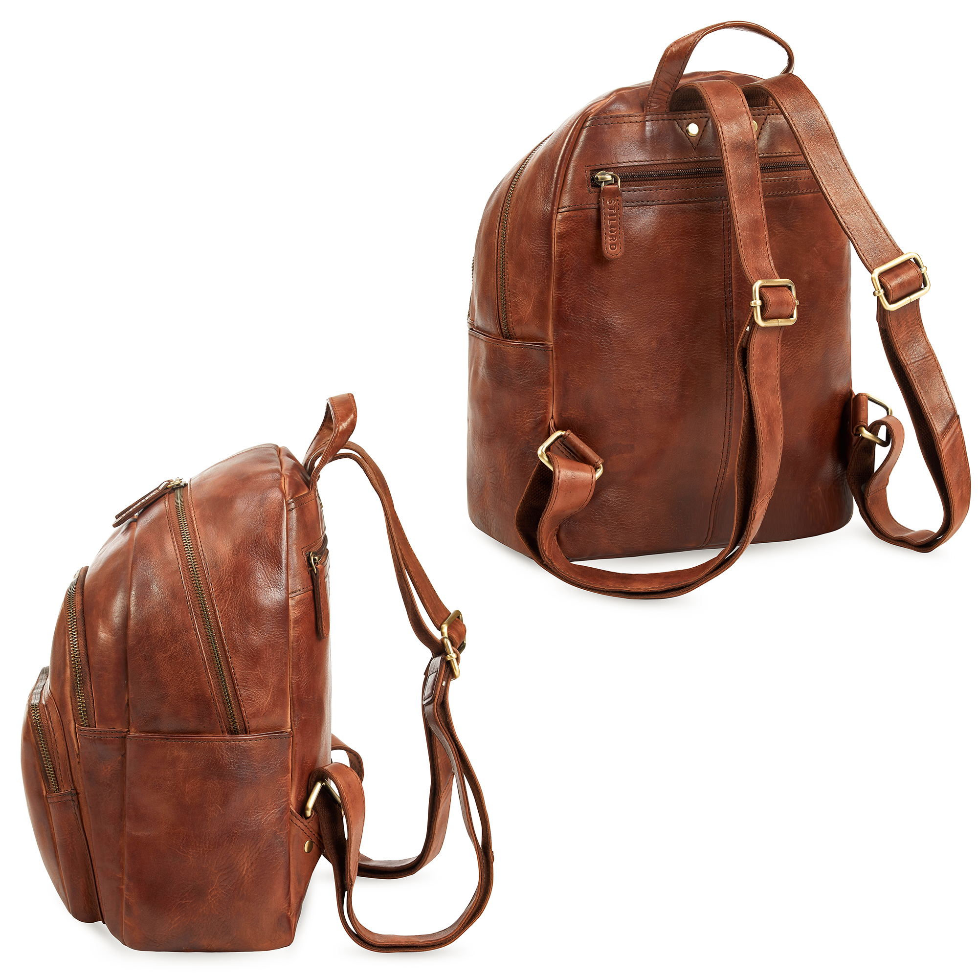 - STILVOLLE ELEGANZ: Der stylische Lederrucksack “Bea” verleiht jedem Outfit das gewisse Etwas. Edles Echtleder, goldfarbene Reißverschlüsse und moderner Vintage-Charme machen den Daypack zum Highlight Ihres Alltags.