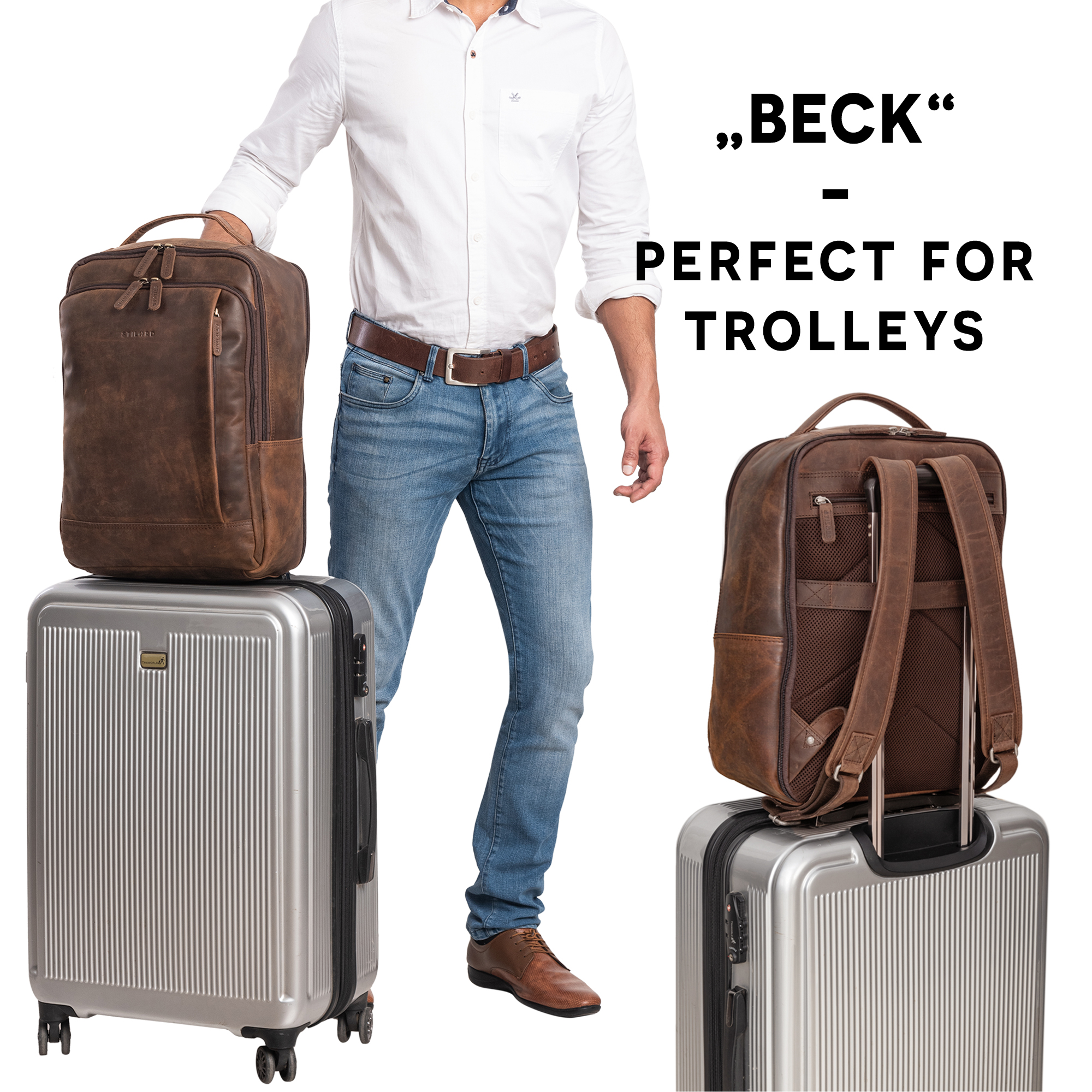 "Beck" Rucksack Leder Groß- Alles auf einen Blick: